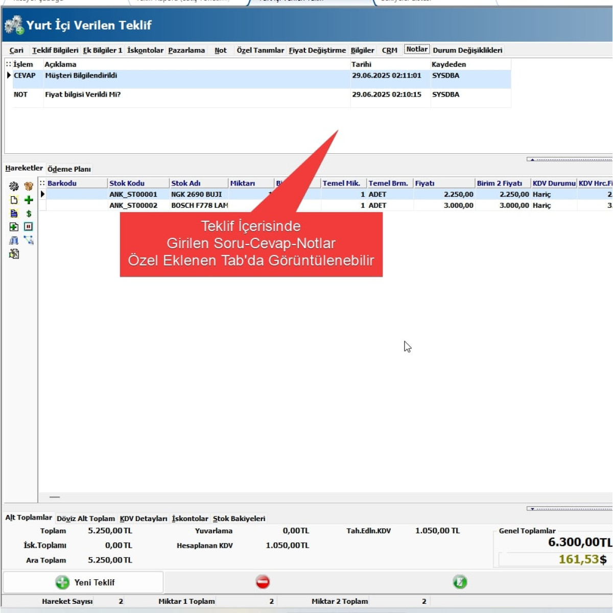 - Bu notlar sayesinde teklif süreci yalnızca fiyatlandırmadan ibaret kalmaz; süreç boyunca yaşanan gelişmeler de takip edilebilir hale gelir.